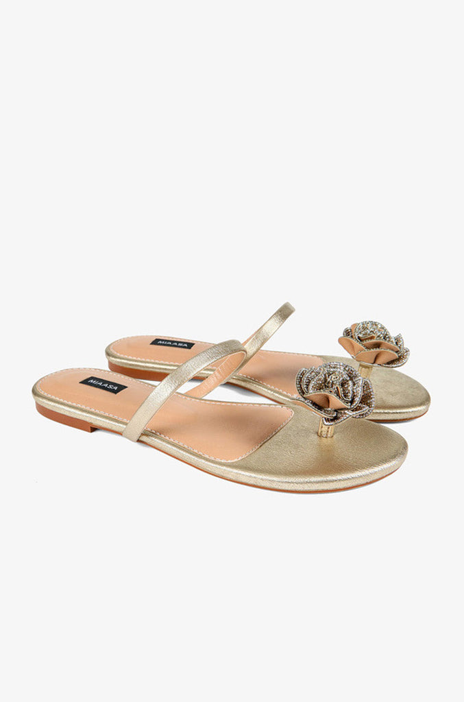 Featuring ombre crystals and finished with a delicate strap, this chic toe-post sandal is the pinnacle of effortless sophistication—an ideal match for your outfits.